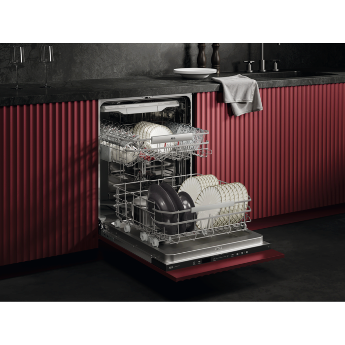 Оновлені кошики EasyFlex Plus легко ковзають і мають три складані ряди, щоб зручно розмістити навіть нестандартний посуд. Прогумовані тримачі та протиковзкі виступи надійно фіксують келихи та запобігають їх зіткненню. Кошик для столових приборів вміщує навіть вінчики та черпаки.