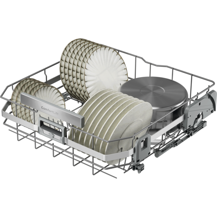 ComfortLift® піднімає повністю завантажений нижній кошик на 25 см для легшого завантаження та розвантаження. Під час висування спеціальні шарніри плавно піднімають кошик до верхнього рівня.