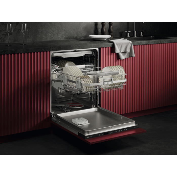 Оновлені кошики EasyFlex Plus легко ковзають і мають три складані ряди, щоб зручно розмістити навіть нестандартний посуд. Прогумовані тримачі та протиковзкі виступи надійно фіксують келихи та запобігають їх зіткненню. Кошик для столових приборів вміщує навіть вінчики та черпаки.