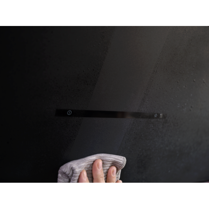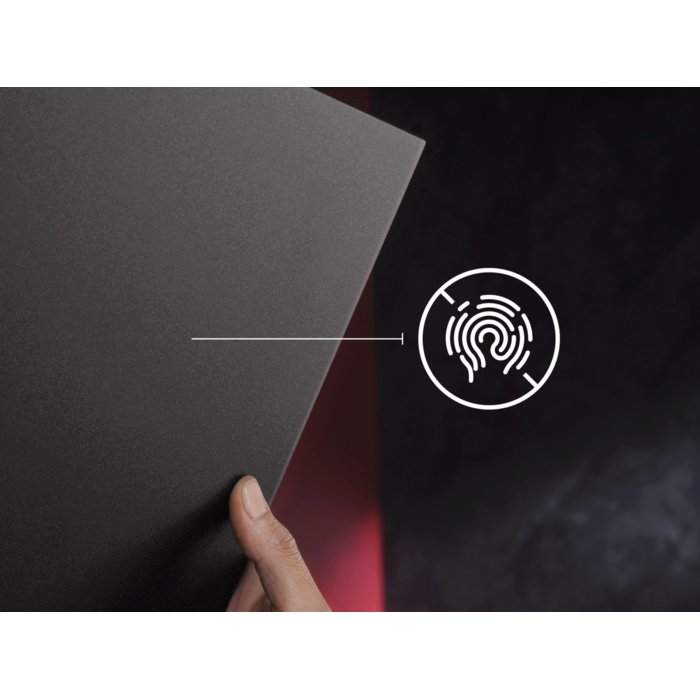 Витончений матово-чорний дизайн надає кухні сучасного вигляду. Витяжка ідеально поєднується з варильною поверхнею SaphirMatt®, створюючи довершений образ інтер’єру сучасної кухні. Стійка до відбитків пальців поверхня забезпечує легке очищення.